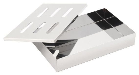 Praktyczne pudełko do wędzenia w klasycznym grillu lub dodawania wędzonego smaku potrawom z grilla. Pudełko ma wymiary 21 x 13 x 3,5 cm i jest wykonane ze stali nierdzewnej, z perforacją do stopniowego uwalniania zapachu z wiórów drzewnych.