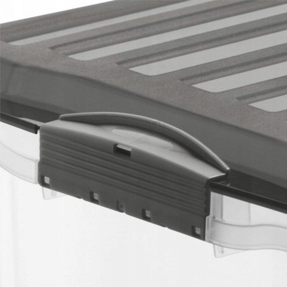 Pudełko do przechowywania o pojemności 70L. Przezroczyste pudełko + szare wieczko. Wieko wyposażone jest w klipsy zabezpieczające przed niepożądanym otwarciem. Wysokiej jakości materiał i design.