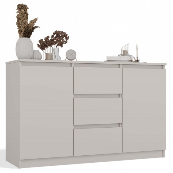 Kolor Kaszmir nadaje komodzie nowoczesny i elegancki wygląd, który harmonijnie komponuje się zarówno z minimalistycznymi, jak i bardziej klasycznymi wnętrzami.