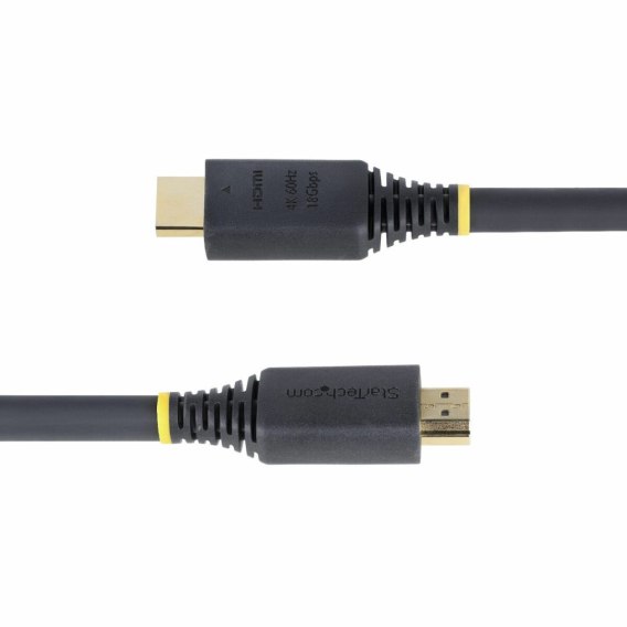 HDMI2-CABLE-4K60-7M marki Startech to kabel HDMI wysokiej prędkości zaprojektowany, aby zapewnić niezawodne i bezstratne połączenie, szczególnie polecany osobom poszukującym solidnego rozwiązania do przesyłania treści audiowizualnych w rozdzielczości do 4K przy 60 Hz na większe odległości. Wykonany w kolorze czarnym z wysokiej jakości materiałów, takich jak TPE na powłoce oraz aluminiowa folia jako ekranowanie, kabel minimalizuje zakłócenia elektromagnetyczne i gwarantuje trwałość w intensywnie użytkowanych instalacjach lub biurach. Dzięki długości 7 metrów model ten ułatwia podłączanie urządzeń oddalonych od siebie, takich jak komputery, monitory, telewizory czy nowoczesne projektory, a zgodność ze standardem HDMI 2.0 pozwala cieszyć się obrazem w ultra wysokiej rozdzielczości, obsługą HDR oraz wielokanałowym dźwiękiem, a także innymi zaawansowanymi funkcjami. Złącza typu męski-męski zapewniają bezpośrednią i bezpieczną integrację z większością współczesnych urządzeń AV i komputerowych, oferując stabilny i wyraźny przesył zarówno w domu, jak i w środowisku profesjonalnym. Ten kabel spełnia oczekiwania użytkowników wymagających wydajności, niezawodności i pełnej kompatybilności przy przesyłaniu wysokiej jakości sygnałów cyfrowych.