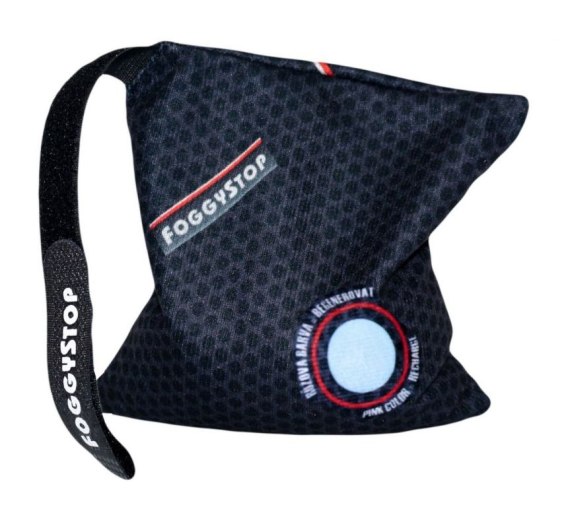 Produkt wyposażony we wskaźnik kolorymetryczny wilgotności, pochłania zapachy powstałe głównie w wyniku palenia lub transportu psów. Zmniejsza ryzyko korozji spoin nadwozia, zwłaszcza podłogi. Ponadto produkt można wysuszyć w ciągu 2 minut i ponownie użyć do 100 razy przez 3 lata. To koncepcyjne rozwiązanie może docenić każdy, kto już doświadczył stresu i niebezpieczeństwa zaparowania lub zamarznięcia szyby samochodu. Znacząco zwiększa bezpieczeństwo jazdy w samochodzie. Produkt przeszedł również pomyślnie testy w ekstremalnych warunkach austriackich Alp. Koło wskaźnika zmienia kolor w zależności od stopnia zwilżenia zawartości. Całkowicie wysuszony Foggystop PLUS jest oznaczony niebieskim kolorem, który zmienia się z białego na różowy wraz ze wzrostem wilgotności. Pełne białe lub różowe kółko wskazuje na potrzebę regeneracji.